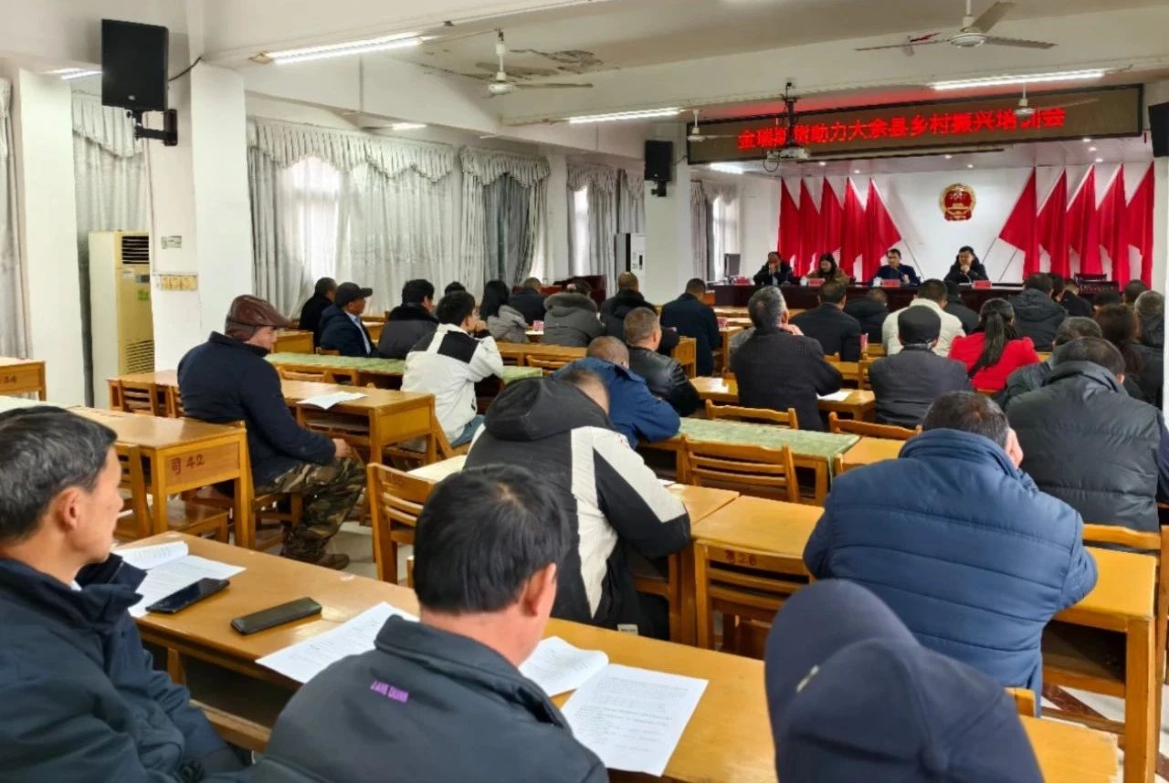 为做好金融服务助力乡村振兴,3月6日,大余县金融服务中心邀请金瑞期货赣州市分公司在大余县新城镇举办期货助力乡村振兴培训会,新城镇党委副书记、镇长王浩主持会议。新城镇部分镇领导、村书记以及生猪、小龙虾养殖企业负责人共计50余人参加培训。