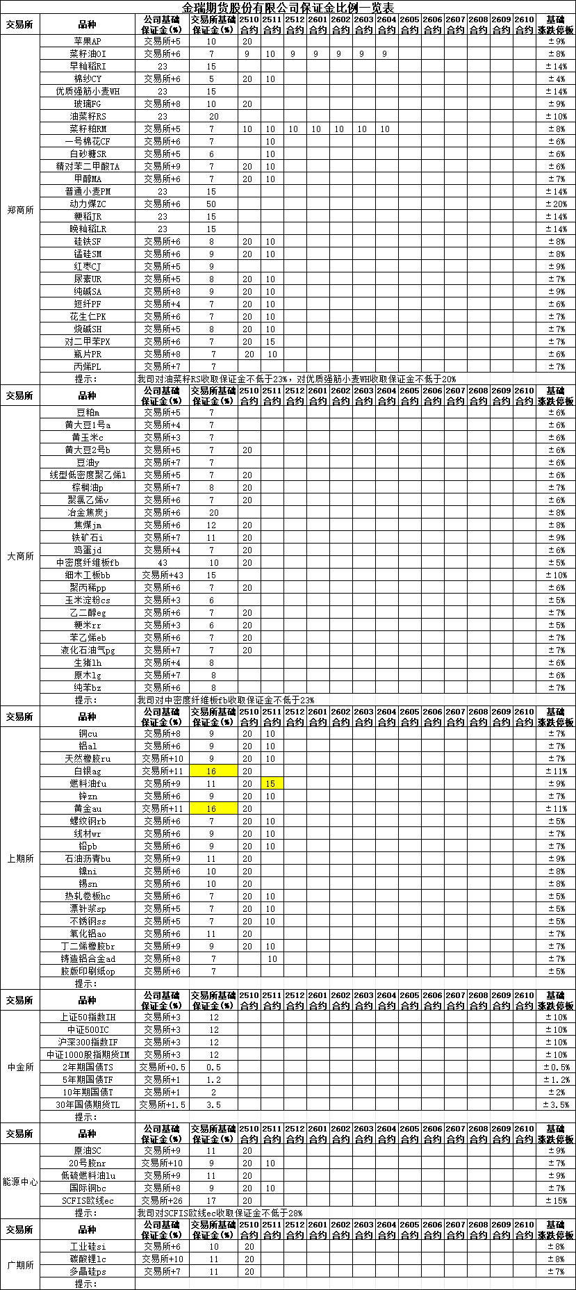 保证金比例提示2025-10-22